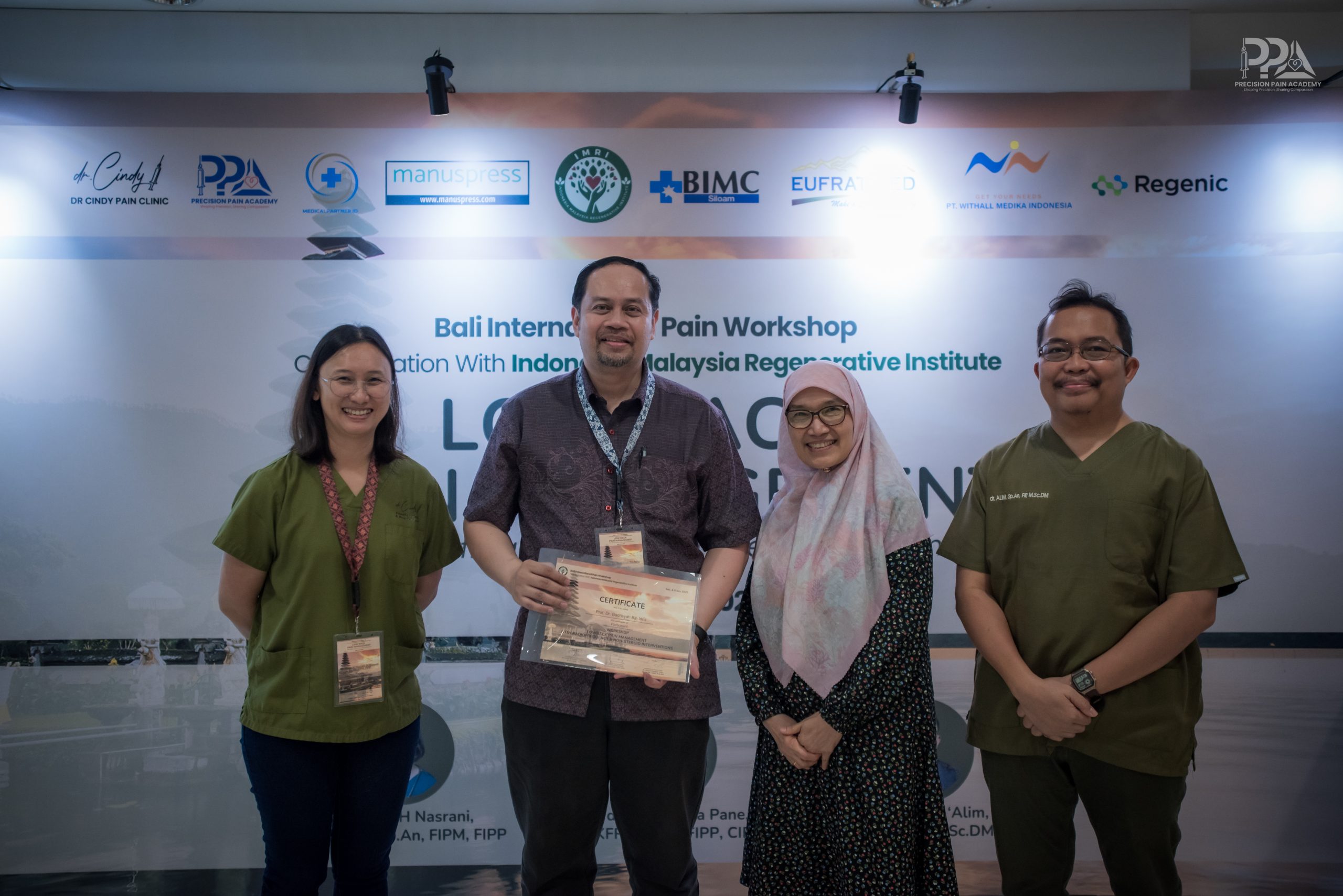 “Thank you very much for having me as one of the participants in this Bali International Pain Workshop, which is a very good event actually, exposing myself even though I have experiences in actually doing pain management. I gained any other experiences from the great teachers here who actually showed me the best technique, how actually how to manage the patients with chronic back pain especially. And also I would like to encourage those actually who have opportunity in the future to actually to join these courses to actually to either to develop new skills or to actually to improve whatever experience that they already gained.”